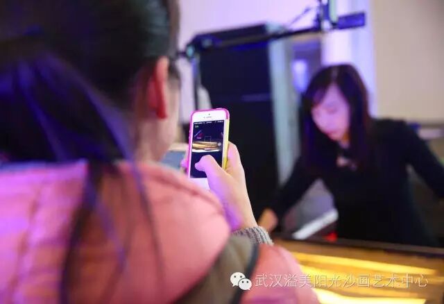 观众们手机拍不停,脖子升老长,嘿!!沙画魅力!