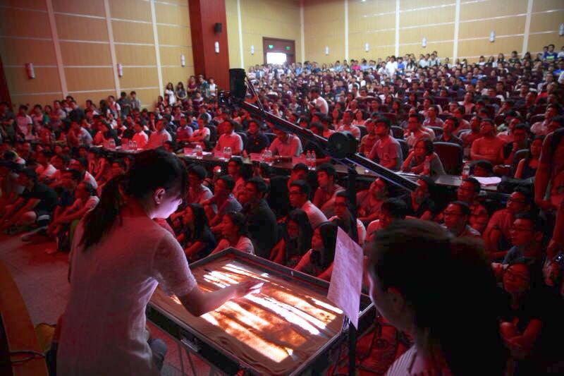 华为在华中地区连续几场的招聘会上,全由周潋老师开场沙画表演,掌声不断!